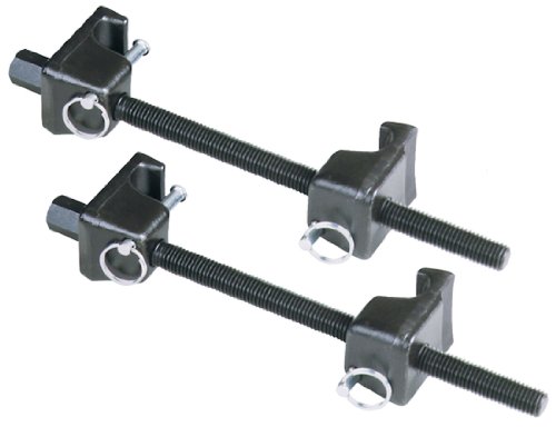 These devices quickly and easily compress most sizes of MacPherson spring. Installation is quick and simple. Compression is achieved by alternating from one assembly to another. Each unit has a screw heat treated alloy thrust (5/8 "-11 x 12") with fo